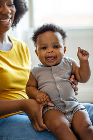 cute portrait of an African baby at home, close-up