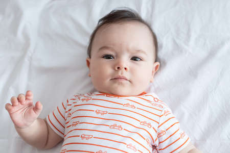 Close up picture of 4 months Asian baby with shadow and eyes detail