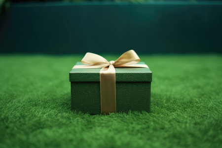 Gift box on green grass background. Holiday and celebration concept.Generative AI