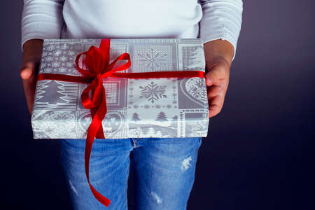 People holding gift box, new year gift box, Christmas gift box ,copy space. Christmas, hew year, birthday concept.