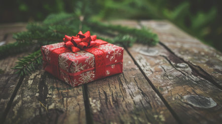 A Beautifully Wrapped Holiday Gift Box with a Red Ribbon and Festive Decorations for Christmas Joy