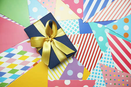 gift box with color paper table top viewpoint