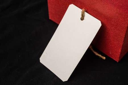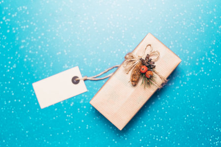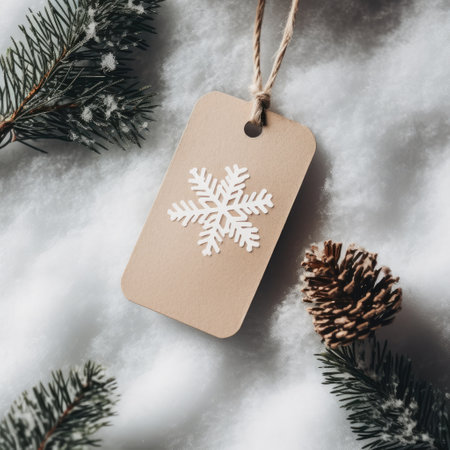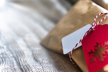 Christmas craft carton gift tag, blank tag mockup, close-up with copy space
