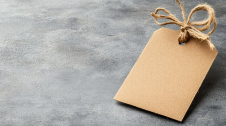 Minimalist paper tag mockup with natural fiber twine placed on a soft linen background. The scene evokes a rustic and eco-friendly feel, ideal for showcasing branding, pricing, or product labeling in a natural and elegant context. The neutral tones and organic textures make this image perfect for craft packaging, handmade goods, or sustainable product presentations