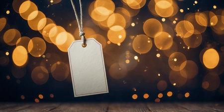 AI Generated. Blank paper price tag hanging on bokeh lights background