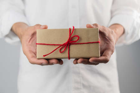 mans hands Holding Gift box In Package