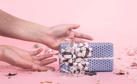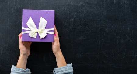Closeup of woman's hands with nice gift box. Present for birthday, Christmas or any other celebration.