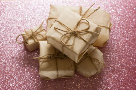 Presents in rustic style for Christmas seasonal holiday