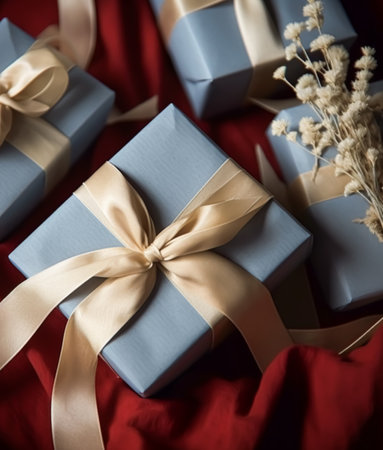 Holiday gifts and presents, blue gift boxes as surprise present for baby shower, birthday, Christmas, boxing day, wedding and holidays shopping, post-processed, generative ai