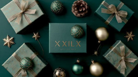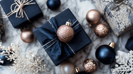 Elegant ornament selection placed neatly for upscale holiday branding.