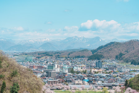 Tendo Park or Maizuru Park with Sakura Cherry Blossom in Spring season. Yamagata prefecture, Tohoku, Japan, 21 April 2025