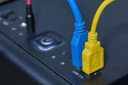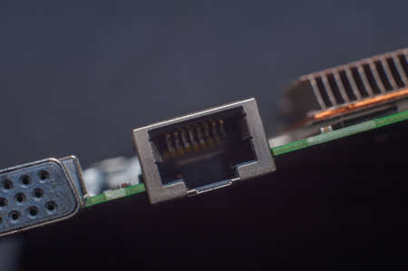 Computer ports close up, repair and upgrade concept