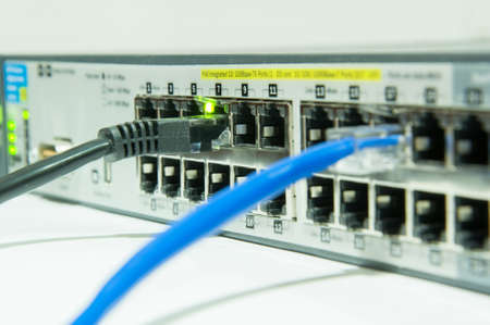 internet network switch with UTP cable isolated on the white