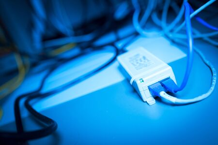 Plug in network. Super macro shot with shallow depth of field.