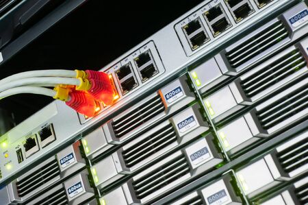 Online storage files backup, transfer, server information storage with internet network cables connected