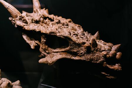 Dinosaur skeleton head close up photo in museum