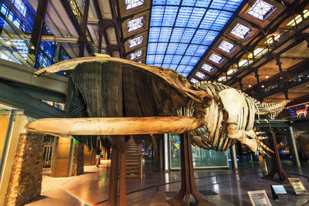 Skeleton of the southern right whale (Eubalaena australis) in The French National Museum of Natural History (Museum national d'histoire naturelle) in Paris, France, on April 12, 2014