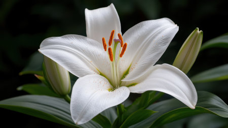 Leaves and buds of a beautiful lily flower in the wild