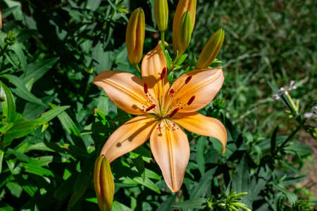 Beautiful lily flowers grow in the summer in the fresh air