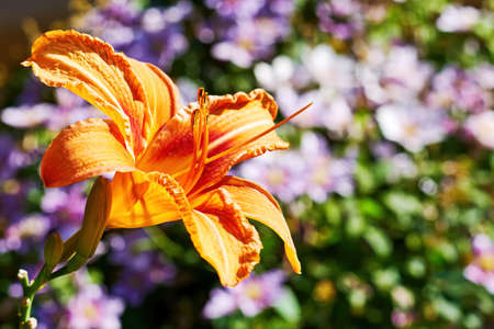 Beautiful flower of orange lily in garden on a summer day.