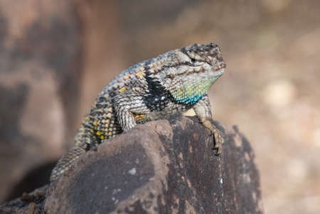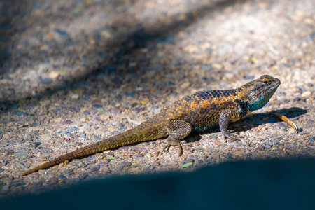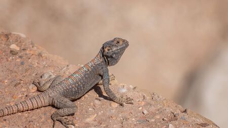 A desert lizard perched on a rock in Rio Grande Nature Center State Park, Albuquerque, New Mexico