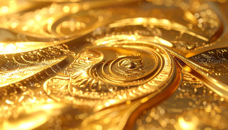 Intricate golden swirls and filigree with detailed patterns and a bright, reflective metallic sheen.