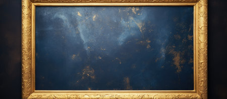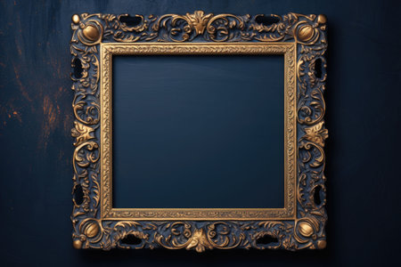 A beautiful ornate gold picture frame against a rich dark blue background, perfect for showcasing artwork or cherished moments in a sophisticated style.