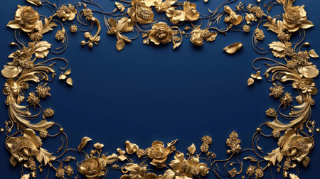 This stunning image features an ornate gold floral border set against a rich deep blue background, creating a luxurious and elegant aesthetic perfect for invitations or decorative use.