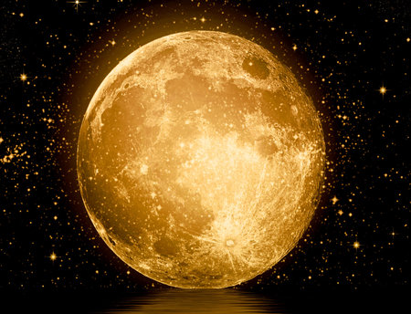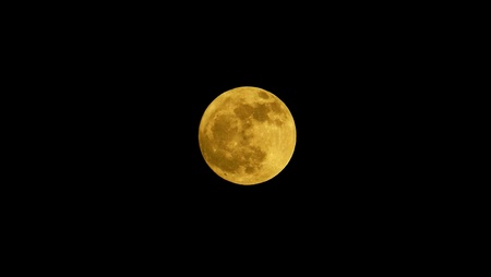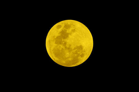 Super yellow moon isolated on black background - Real moon on dark night sky selective focus