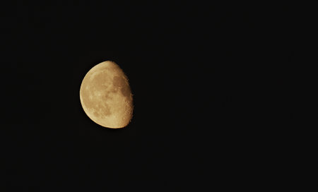 The orange moon is waxing crescent at night, a natural satellite against the starry sky.