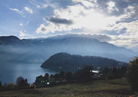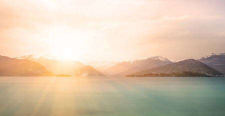 Sunset view over Swiss Alps and Lake Lucerne
