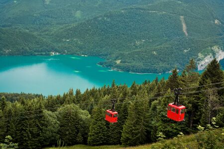 View from Zwolferhorn on Wolfgangsee with cabel car in Austria