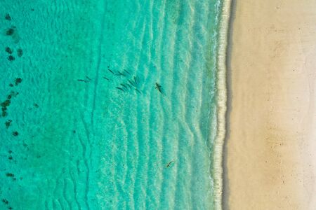 Tropical beach and turquoise ocean. Aerial view. Paradise place in morning