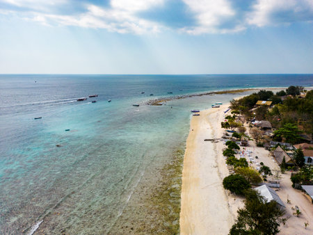 Aerial of Gili Trawangan beach in Lombok, Indonesia