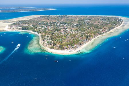 Aerial view with Gili island and ocean. Beautiful view of Gili Air.