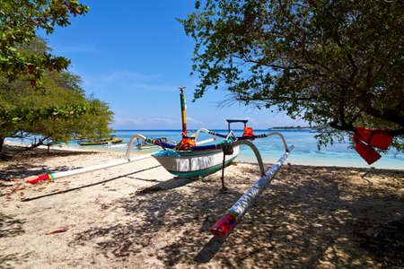 Fisherman boat on beach Gili island, Trawangan at Indonesia