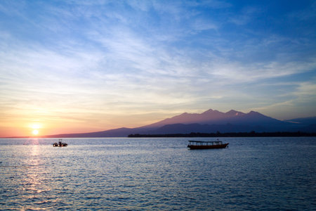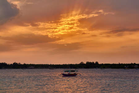 Magic Unreal Colorful Sunset with local boat in Gili island, Indonesia