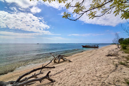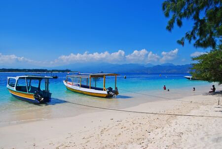 Beautiful seascape at summer on Gili Islands, Indonesia. Gili is known for its beautiful white sand beaches, and colorful coral reefs.