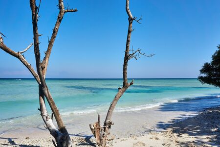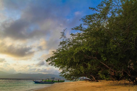TRAWANGAN, INDONESIA - AUGUST.15.2019: Trees at the Beach at Gili Trawangan