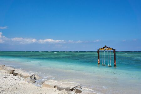 TRAWANGAN, INDONESIA - AUGUST.15.2019: Swing at the beach on Gili trawangan.