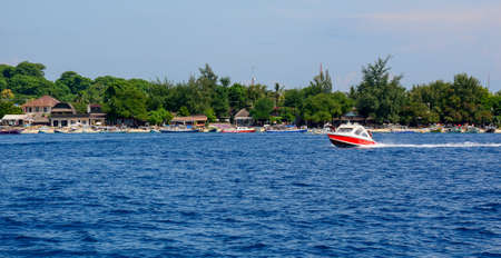 Gili, Indonesia - Apr 17, 2016. Beautiful seascape at summer on Gili Islands, Indonesia. Gili is known for its beautiful white sand beaches, and colorful coral reefs.