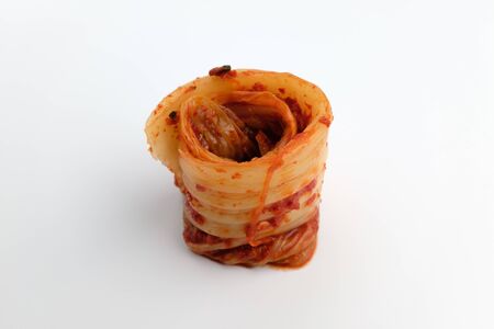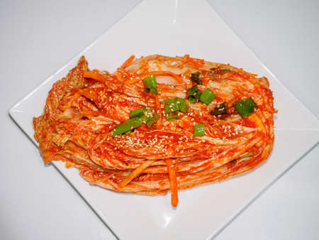 Close up Korean Kimchee on white plate.