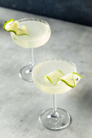 Boozy Refreshing Cold Saketini Cocktail with Sake and Cucumber