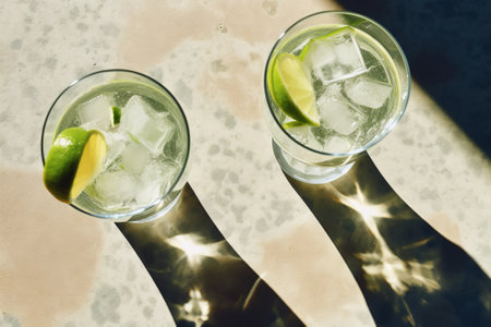 Refreshing mojito cocktail on a sunny table with shadows, a perfect summer drink