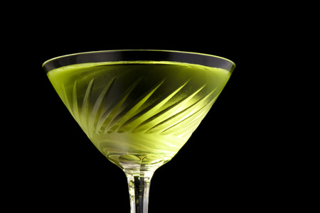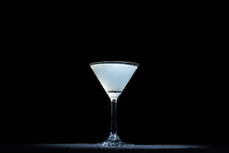 A glass of cocktail on a black background