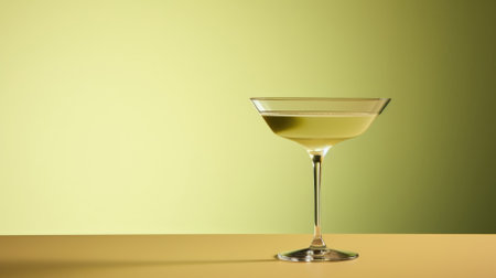 Classic martini cocktail on yellow and green background with copy space.