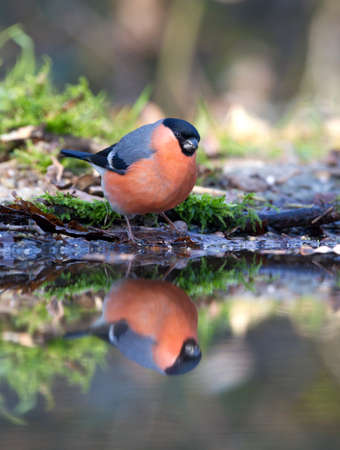 Male Bullfinch (Pyrrhula pyrrhula) in the forest of Noord Brabant in the Netherlands.