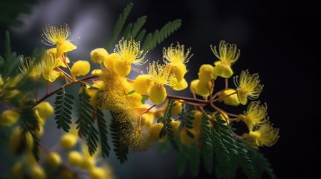 Acacia tree flowers blooming, Bright color. Generative Ai