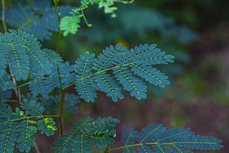 Grey healthy leaves of Albizzia with or Lenkoran acacia with green leaves. Medicinal botanical plant for herbs and medicine use.