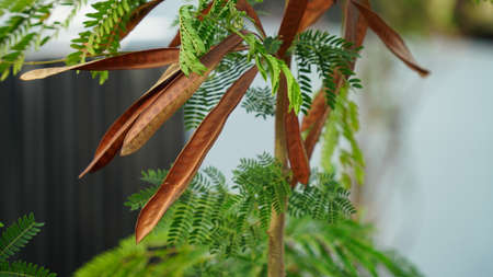 White Popinac or Leucaena leucocephala with green leaf in garden